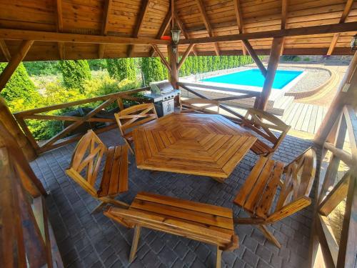 Willa-Ranczo Gródek坐落于Gródek Rządowy,提供季节性室外泳池、共用休息室和露台。这家自助式别墅拥有私人泳池、花园和免费私人停车位。