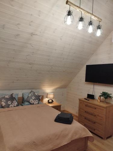 Domino - domek nad jeziorem坐落于Bieniowice,距离Art Gallery仅有13公里,配备海滨住宿、私家海滩、露台、烧烤设施和免费WiFi。这家度假屋配有免费私人停车位。客人可以在周边地区体验徒步和垂钓等活动。