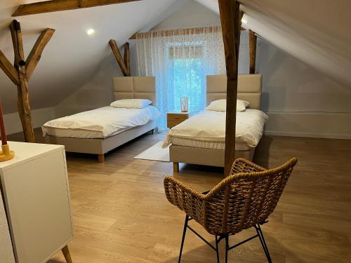 Dom w lesie przy stawach距离奥克宁湖有40公里,距离布罗德尼察湖区有43公里。华沙莫德林机场距离住宿有110公里。
