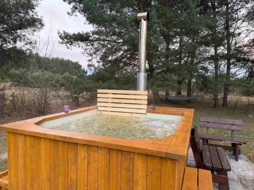 Dom w lesie przy stawach位于Dylewo,距离戈卢布-多布任城堡有33公里,提供阳台、花园和免费WiFi。这家度假屋配备免费私人停车位。客人可以在周边地区体验徒步和垂钓等活动。