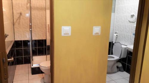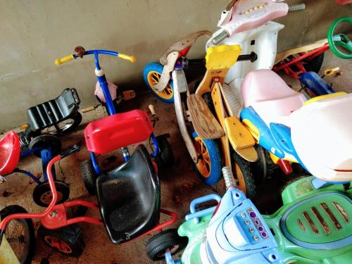 The rooms feature a simple interior design with tiled floors. Painted in warm, pastel colours, each one boasts a private bathroom with a shower. The kitchenette includes kitchenware, an electric kettle and a refrigerator.