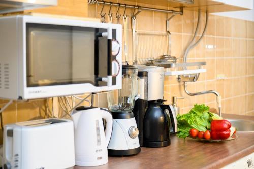 这家空调公寓配有1间卧室、起居室、带冰箱和咖啡机的设施齐全的厨房以及1间带坐浴盆和淋浴设施的浴室。1间浴室配有浴缸,也拥有免费洗浴用品,提供毛巾和床上用品。