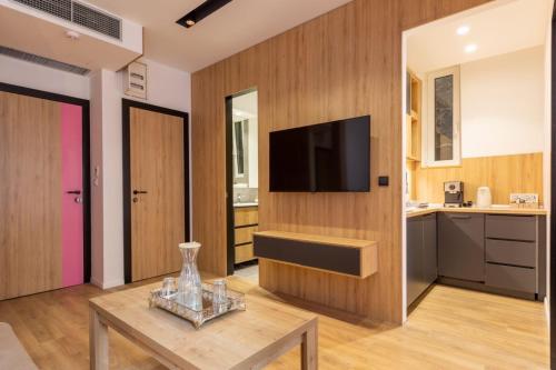 每间房间都提供带迷你吧的设施齐全的厨房、带沙发床休息区、平板电视以及带淋浴设施和免费洗浴用品的私人浴室。
