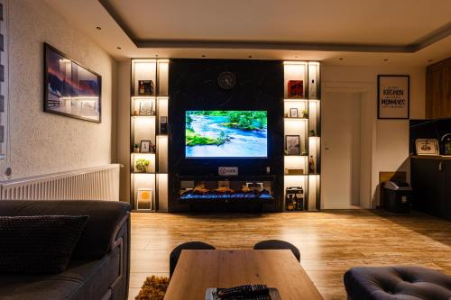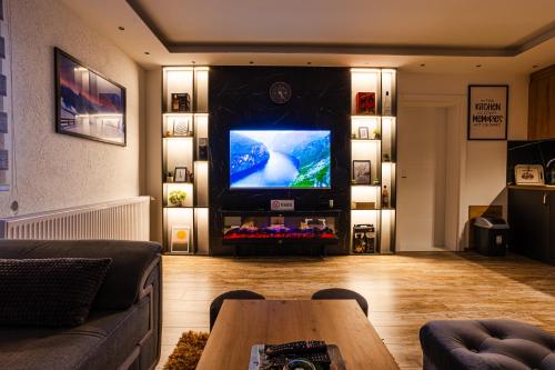 这家空调公寓配有2间卧室、起居室、带冰箱和电热水壶的设施齐全的厨房以及2间带淋浴设施和吹风机的浴室。这家公寓还提供休息区、洗衣机以及2间带拖鞋的浴室。