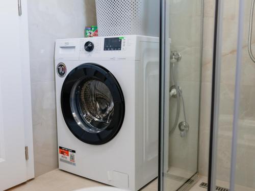 这家空调公寓配有2间卧室、起居室、带冰箱和电热水壶的设施齐全的厨房以及1间带淋浴设施和免费洗浴用品的浴室。这家公寓还配备休息区、洗衣机以及1间带吹风机的浴室。