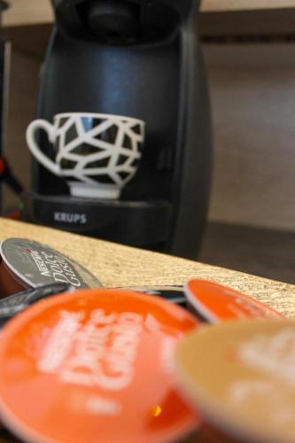 这家空调公寓配有1间卧室、起居室、带冰箱和咖啡机的设施齐全的厨房以及1间带浴缸或淋浴设施和免费洗浴用品的浴室。这家公寓还配备休息区、洗衣机以及1间带吹风机的浴室。