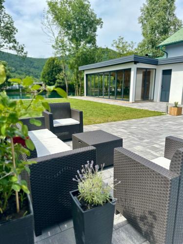 Unavis Residence享有山景,配备季节性室外泳池、私家海滩和共用休息室,距离朱克斯-穆金杰汽车站约有44公里。这家自助式别墅拥有私人泳池、花园、烧烤设施、免费WiFi和免费私人停车位。