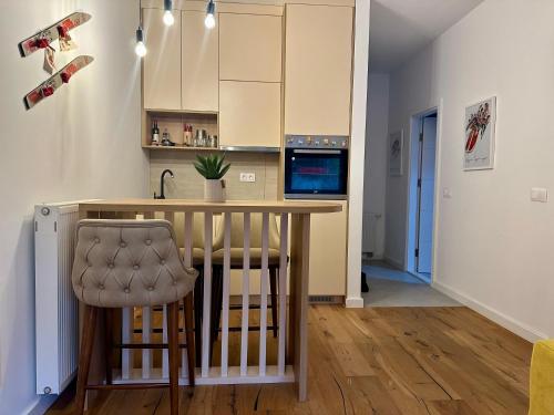 这家公寓配有1间卧室、起居室、带冰箱和电热水壶的设施齐全的厨房以及1间带淋浴设施和吹风机的浴室。这家公寓也提供休息区和1间浴室。
