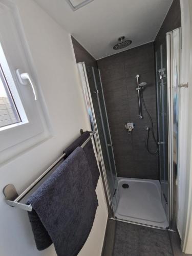 这家空调船屋配有2间卧室、起居室、带冰箱和咖啡机的设施齐全的厨房以及1间带淋浴设施和吹风机的浴室。这家船屋也配有休息区和1间浴室。