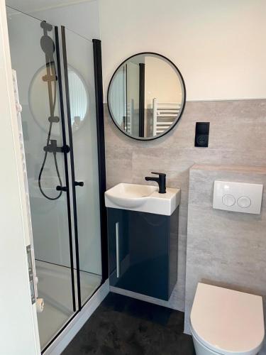 Gemütliches Tiny House am Strand享有河景,配备露台和庭院,距离不来梅港城市剧院约有31公里。这家住宿距离不来梅港中央车站有28公里,提供花园和免费私人停车位。