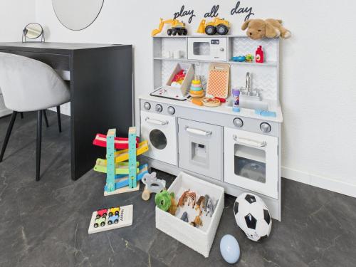 这家公寓提供儿童游乐区。Loft & Living 3 am Geiseltalsee WLAN & Parkplatz的客人可在附近体验骑行,或使用花园。
