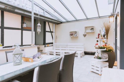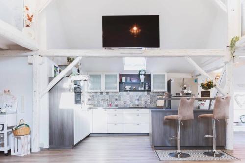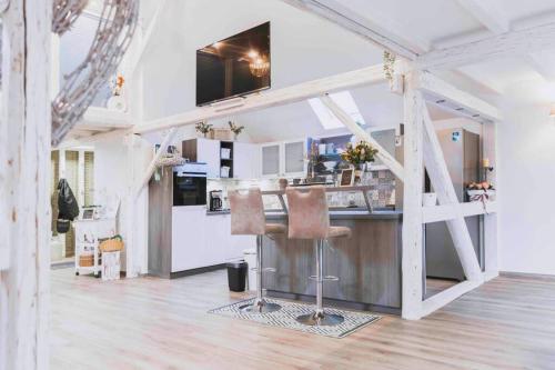 Einzigartiges Ambiente im ScheunenLoft位于Küllstedt,距离艾森纳赫汽车世界仅有42公里,提供露台、餐厅、酒吧和免费WiFi。这家公寓配备免费私人停车位。客人可以在周边地区体验徒步、骑行和乒乓球等活动。