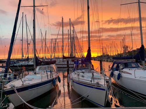 Located in Großenbrode in the Schleswig-Holstein region, Home port Comfortable holiday residence features a terrace. It is situated 100 metres from Großenbrode South Beach and features a shared kitchen. Outdoor seating is also available at the boat.