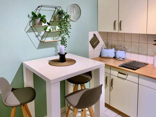 这家公寓提供1间卧室、带冰箱和微波炉的厨房以及1间带淋浴设施、吹风机和洗衣机的浴室。这家公寓还配备平板电视、休息区以及1间带浴缸的浴室。