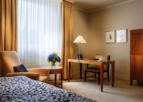The spacious rooms and suites of the Hotel Nassauer Hof feature luxurious furnishings and a modern bathroom.