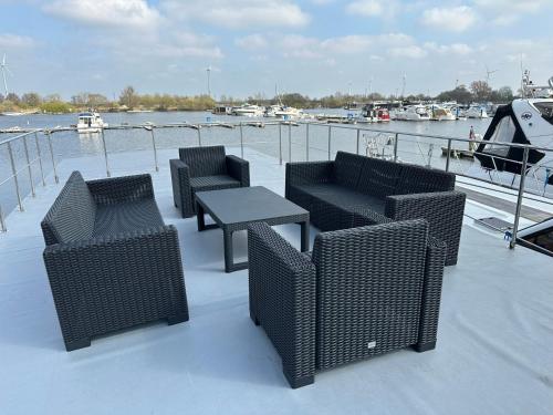 Hausboot La Mare Seeblick位于Weyhe,拥有露台和餐厅,距离Bürgerweide有14公里。这家空调住宿距离不来梅中央车站有14公里,为客人提供免费WiFi,内部提供私人停车位。