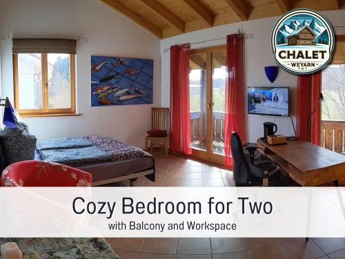 Chalet Weyarn - Doppelzimmer mit Gartenblick位于魏阿尔恩,距离慕尼黑火车东站有36公里,距离德意志博物馆有38公里,提供免费WiFi以及带露台的花园,享有花园景。