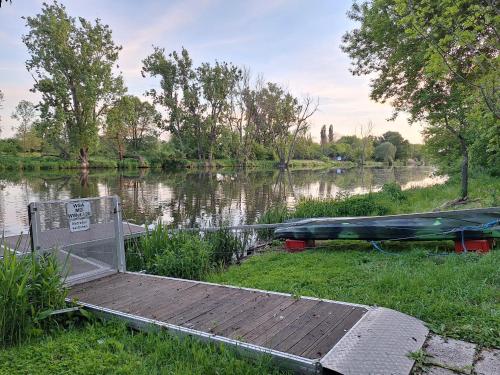 这家度假屋配有1间卧室、1间浴室、床上用品、毛巾、带卫星频道的平板电视、设施齐全的厨房以及河景露台。住宿配有1间带淋浴设施的浴室,配备免费洗浴用品和吹风机。
