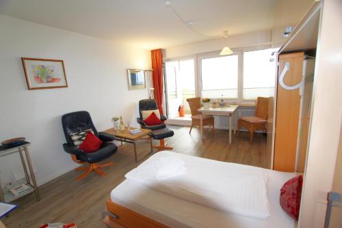 Dünenhof zum Kronprinzen- Seestr 18, App 56坐落于叙尔特岛的文尼斯塔特,拥有阳台,享有海景。这家公寓提供免费WiFi,距离温宁斯特海滩(Wenningstedt Beach)有6分钟步行路程,距离韦斯特兰海滩(Westerland Beach)有2公里。