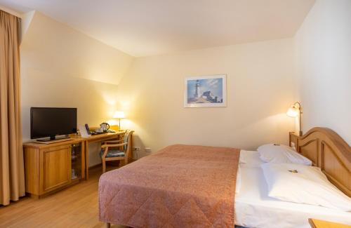 Ringhotel Warnemünder Hof酒店位于宁静的地点,提供带卫星电视、休息区和迷你吧的乡村乡间风格的客房以及适合过敏症患者和残疾人士入住的客房。