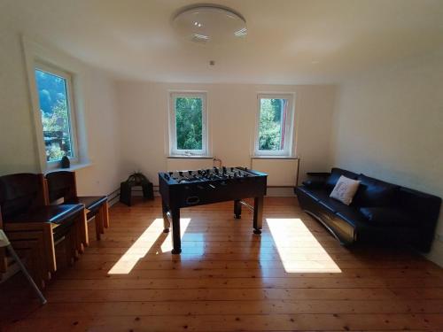 Haus am Wald Zorge 16+ Gäste坐落于瓦尔肯里德,提供花园和露台,距离哈尔茨国家公园有17公里,距离巴德哈尔茨堡火车站有36公里,距离韦尔尼格罗德镇馆有37公里。这家度假屋配备免费私人停车位、共用厨房和免费WiFi。