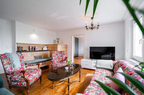 Exklusive Wohnung für 8 Personen mit 4 Schlafzimmern, ESC BASEL 50 Minuten,坐落于瓦尔茨胡特田根,配有客房和阳台。这家自助式公寓配有花园、烧烤设施、免费WiFi和免费私人停车位。