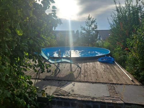 这家度假屋配备室外泳池和露台供客人使用。