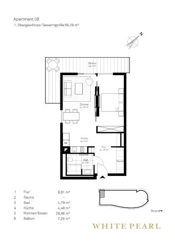 White Pearl Apartment 1.08 Strandallee 44, 蒂门多弗施特兰德 94 100 5 94% 100%