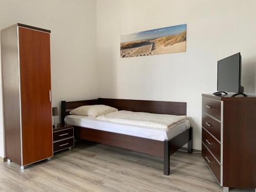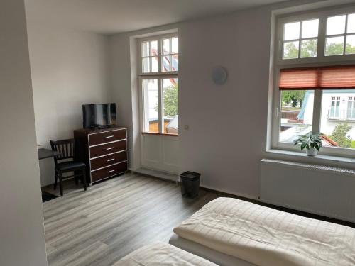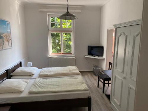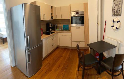 这家旅馆的客房配有衣柜和平板电视。客房拥有配备淋浴设施和吹风机的私人浴室。部分客房还配备配有冰箱的厨房。Villa am Meer - Stralsund的客房配备床上用品和毛巾。