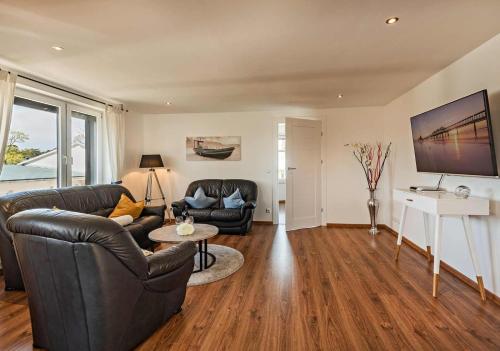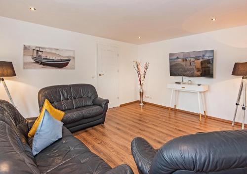 这家空调度假屋配有2间卧室、起居室、带冰箱和咖啡机的设施齐全的厨房以及2间带淋浴设施和吹风机的浴室。这家度假屋还提供平板电视、休息区以及2间带浴缸的浴室。