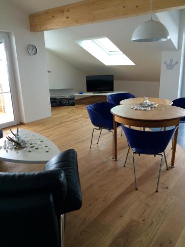 这家公寓提供带桑拿房、土耳其浴室和spa中心的尊贵型住宿。住宿内部配备阳光露台。客人可以在Alpenglück de Luxe Ferienwohnung am Forggensee附近体验骑行。
