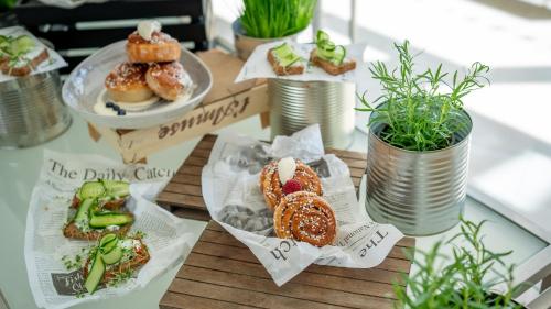 The restaurant serves delicious breakfasts and Mediterranean cuisine. the To Go Café serves coffee around the clock and at the Wundermart-Shop in the lobby you get snacks and cold drinks 24/7.