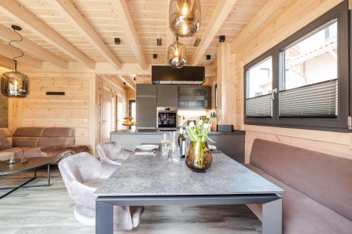 这家度假屋提供露台,享有山景,拥有2间卧室、起居室、平板电视、带冰箱和洗碗机的设施齐全的厨房以及2间带淋浴设施的浴室。这家度假屋还配备休息区、洗衣机以及2间带吹风机的浴室。