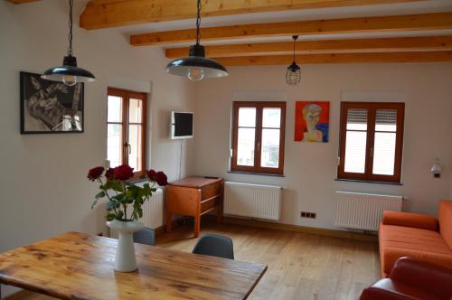 Featuring a garden and views of garden, Dreiseitenhof Radebeul is an apartment situated in a historic building in Radebeul, 2.3 km from Castle Wackerbarth. The property features inner courtyard and quiet street views, and is 10 km from Messe Dresden. There is a sun terrace and guests can make use of free WiFi and free private parking.