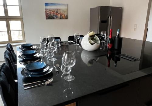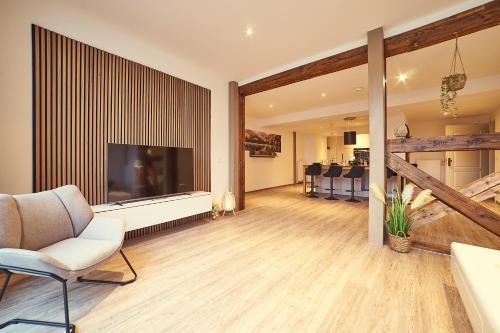 住宿内部配备露台。客人可以在Ferienresidenzen Marktplatz - exklusive Ferienwohnungen mit Fahrstuhl附近体验徒步和垂钓。