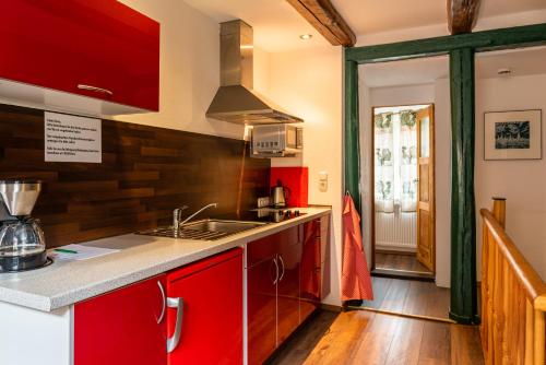 Fachwerkhotel - Ferienhäuser Vorhof zur Hölle距离奎德林堡火车站有不到一公里,提供花园、露台和客房服务,让客人尽享便利。住宿提供免费WiFi,可以安排额外收费的私人停车位。