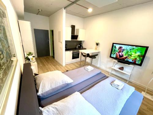 Neu wunderschönenes weißes Apartament am Schlössle Zentrum Goldstadt坐落于普福尔茨海姆,提供免费WiFi和平板电视等设施,距离普福尔茨海姆中央车站有6分钟步行路程,距离奥斯特费尔德文化馆有600米。客人可以在这家公寓的周边地区体验徒步和骑行等活动。