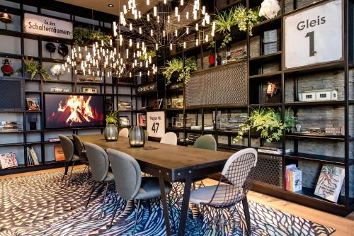 Motel One Nürnberg-City汽车旅馆的客房拥有时尚时尚色彩方案的装饰,设有带卫星频道的平面电视。浴室设有现代化的玻璃家具和花洒淋浴。