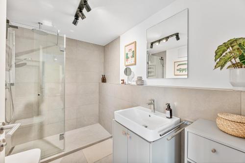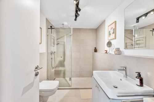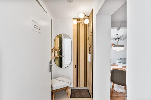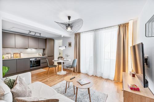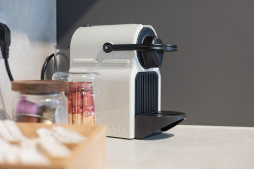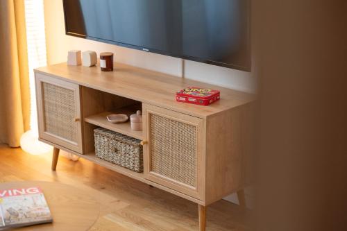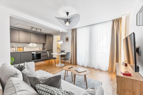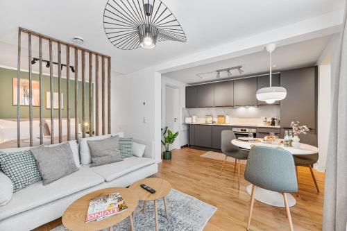 这家公寓配有1间卧室、起居室、带冰箱和咖啡机的设施齐全的厨房以及1间带淋浴设施和吹风机的浴室。这家公寓也提供休息区和1间浴室。