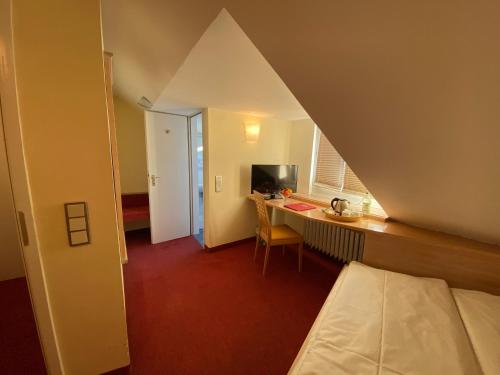 Hotel ADRIA München酒店拥有亮丽的红色外墙,提供以红色为基调且装饰温馨的客房。每间客房均设有现代化的浴室、免费WiFi和带6个免费SKY TV频道的平板电视。