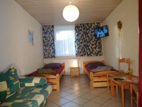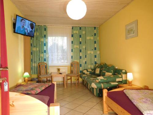 Hostel Waldhaus Am Ferienpark Mirow -Zimmer DU WC坐落于米罗,距离梅克伦堡州立剧院有22公里,配备花园、免费私人停车位、共用休息室和露台。所有客房均拥有带卫星频道的平板电视和私人浴室。这家青旅距离布格尔萨瓦伦活动中心有48公里。