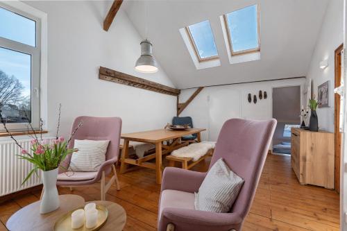 Werkgut - Charmantes Loft坐落于石勒苏益格-荷尔斯泰因州的Meezen,拥有花园。这家住宿的客人可以使用露台、乒乓球桌和免费WiFi。