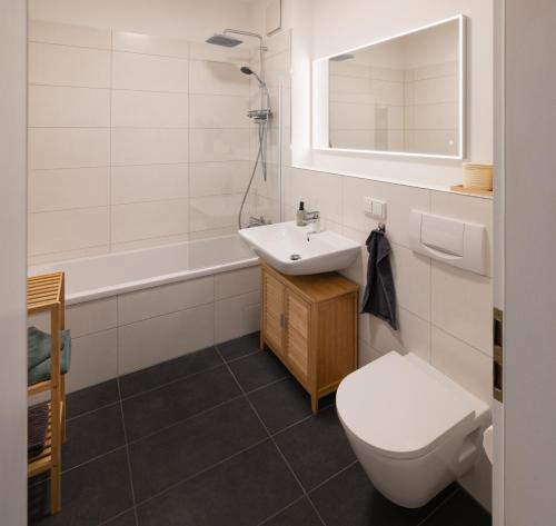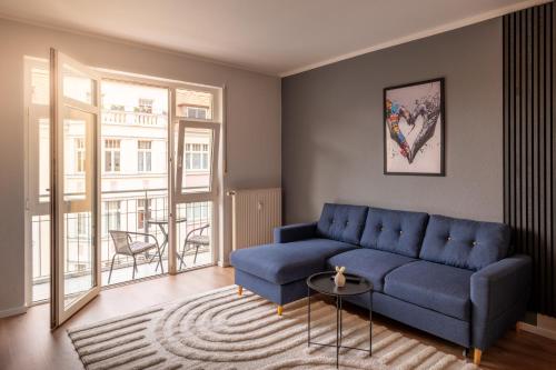 这家公寓提供阳台,享有市景,配有1间卧室、起居室、平板电视、带冰箱和洗碗机的设施齐全的厨房以及1间带浴缸的浴室。1间浴室提供吹风机。