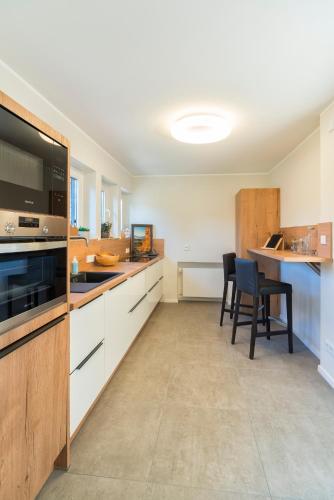 这家度假屋配备4间卧室、2间浴室、床上用品、毛巾、带卫星频道的平板电视、用餐区、设施齐全的厨房以及山景露台。这家度假屋也提供休息区以及2间带淋浴设施和浴缸的浴室。