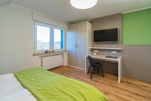 Das Eifelfels享有花园景,提供共用休息室和阳台,距离梦幻乐园约有42公里。这家度假屋配备免费私人停车位。客人可以在周边地区体验徒步和骑行等活动。