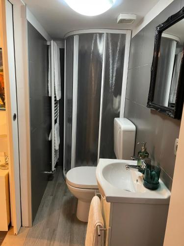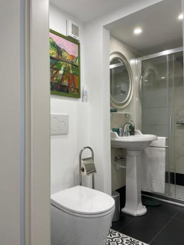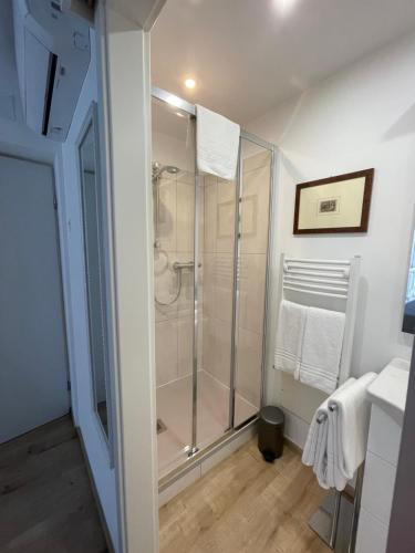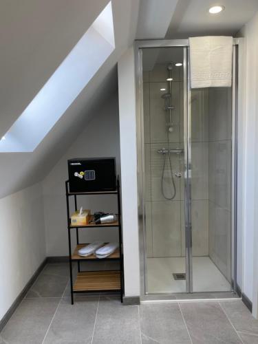 部分房间提供带坐浴盆、免费洗浴用品、吹风机和拖鞋的私人浴室。