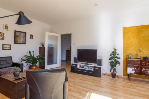 这家公寓配有3间卧室、起居室、带冰箱和咖啡机的设施齐全的厨房以及2间带淋浴设施和吹风机的浴室。这家公寓还配备带有线频道的平板电视以及2间带浴缸的浴室。