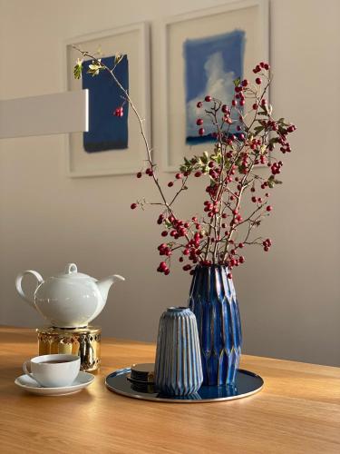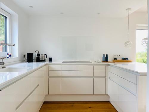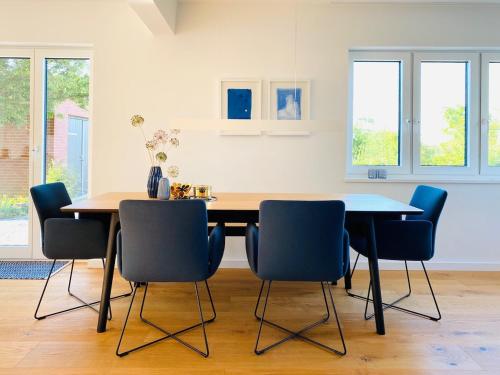 Nordsee im Blick - Kamin & Privat-Garten - Design-Haus Heverstrom坐落于石勒苏益格-荷尔斯泰因州的胡苏姆,配有庭院,享有湖景。这家别墅配备免费私人停车位、共用厨房和免费WiFi。