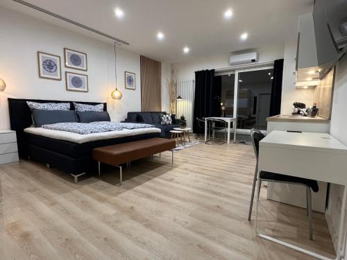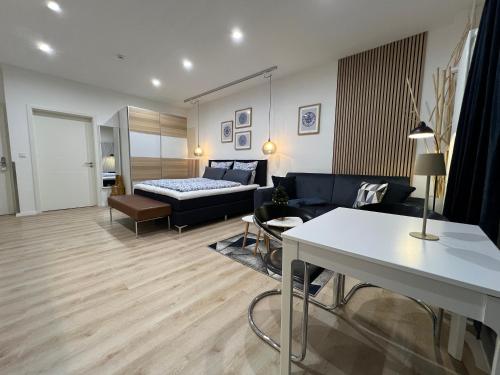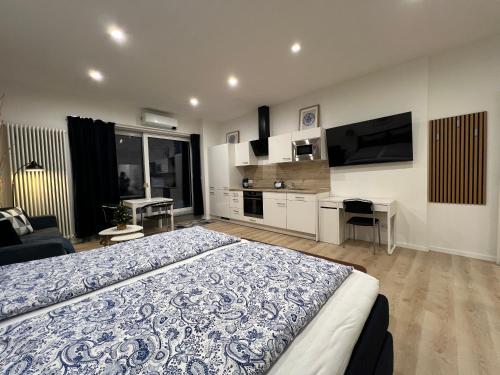 这家公寓拥有1间卧室、带有线频道的平板电视、带冰箱和洗碗机的设施齐全的小厨房、洗衣机以及1间带淋浴设施的浴室。1间浴室提供吹风机。
