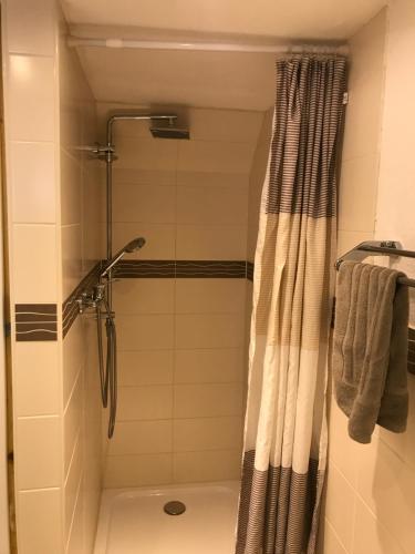 现代化的私人浴室设有淋浴、浴缸和吹风机。客人可以在公寓欣赏到花园的景致。